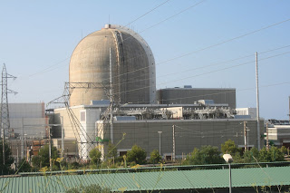 Para salir otra vez a las zonas de playa he de bordear todo el perímetro de la central. Desde ahí contemplo los principales edificios de la gran instalación